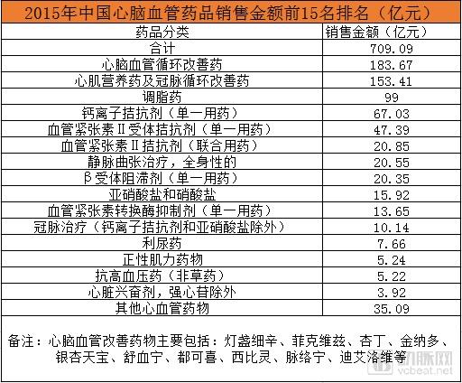 心脏疾病患者手术后,一般需要服用抗凝类药物以及其他药物来维持健康状态。《中国心血管报告2016》数据显示,2015年中国100张床位以上医院药品总购药额为6451.58亿元。其中心脑血管药物总购药额709.09亿元,前五位药物类别分别为心脑血管循环改善药、心肌营养药及冠脉循环改善药、调脂药、钙离子拮抗药(单一药物)、血管紧张素II受体拮抗剂(单一药物)。
