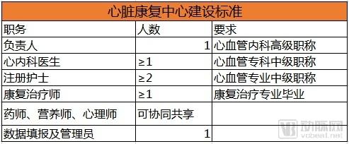 中国心血管健康联盟对心脏康复中心的建设提出了具体的要求: