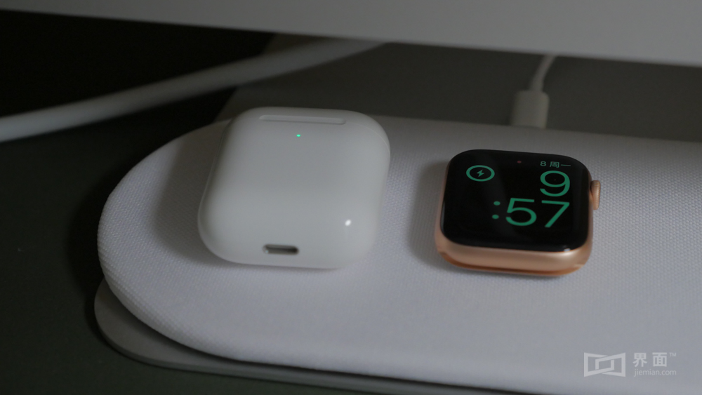 经过多次测试,它支持同时为两部手机和Apple Watch(或AirPods)无线充电。不过由于无线充电板上的空间有限,在为两部手机无线充电的前提下, AirPods勉强能“挤”进去,Apple Watch则不在话下。