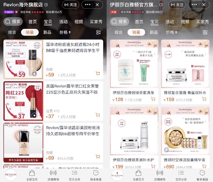 天猫平台上,伊丽莎白·雅顿官方旗舰店拥有368万粉丝,月销过万产品有一个,过千产品有11个,而且该品牌与电商平台合作紧密,会一同推广新品。而彩妆品牌露华浓天猫海外旗舰店的粉丝数只有134万,店内月销售过万的产品只有露华浓豆沙色黑管口红及24小时粉底液,其他月销均只有几百,店内产品数量更新缓慢,2016年9月上线时有33个彩妆产品,2018年8月为48个,目前又调整为34个。