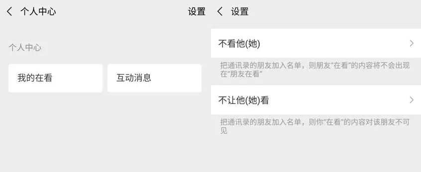 看一看的个人中心功能非常简单:我的在看、互动消息以及设置。
