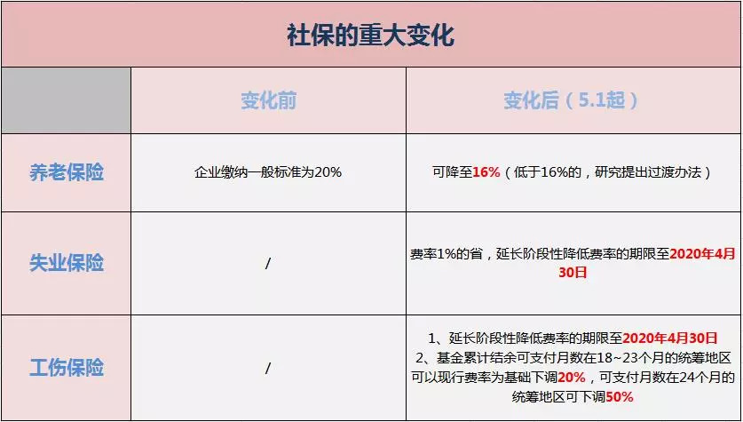 养老保险、失业保险和工伤保险的具体变化如上图所示,除此之外↓↓↓