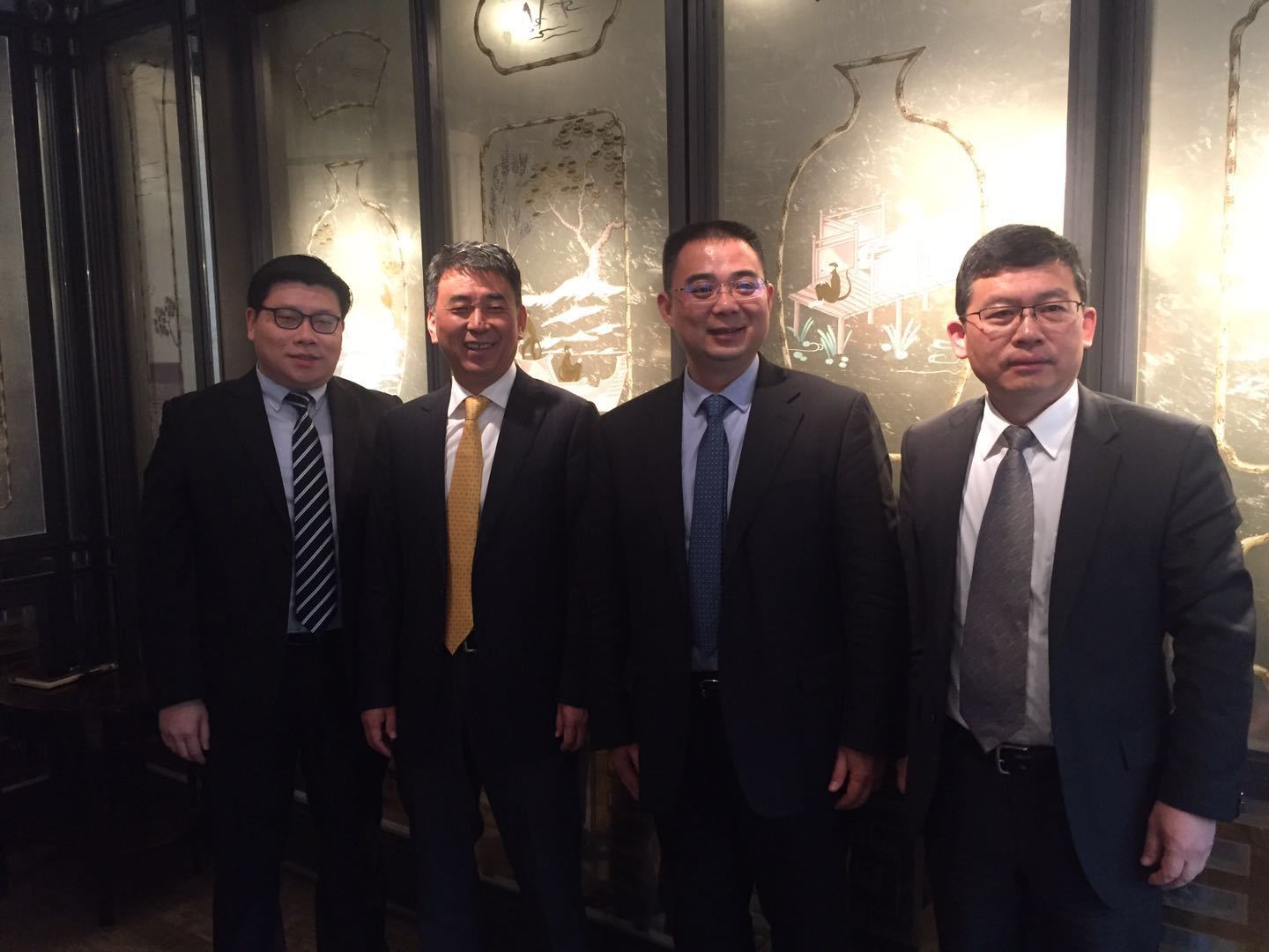 2019年4月4日中国旭阳集团管理层中董事会主席兼任行政总裁杨雪岗(左二)、执行董事兼任副总裁韩勤亮(右二)、集团战略规划部总经理孙长江(右一)、公司秘书何沛霖(左一)出席了会议。