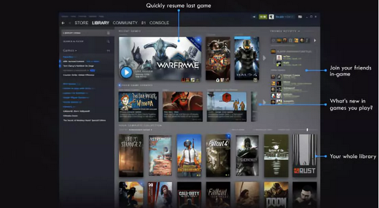 比如,Steam的评分机制只有推荐和不推荐,这导致了一种“刷差评”的现象,而Epic不仅使用数字评分,还将有可能提供开发者权限,用于筛选用户评论或者禁止用户评论。再比如,Steam不断改版升级的游戏社区功能。有趣的是,不论是《Steam:2018》的未来构想,还是对GDC 2019上Epic公布8500万注册用户的应对,游戏社区一直是Steam用来回击“躺着挣钱”的武器。所以诞生了专门让开发者和玩家沟通的Steam Events,并对游戏库进行了优化。在新版游戏库中,玩家可以更好的看到“最近玩的游戏”,并加强与玩家的互动,完整的游戏内容整合也与游戏库主页相配套。