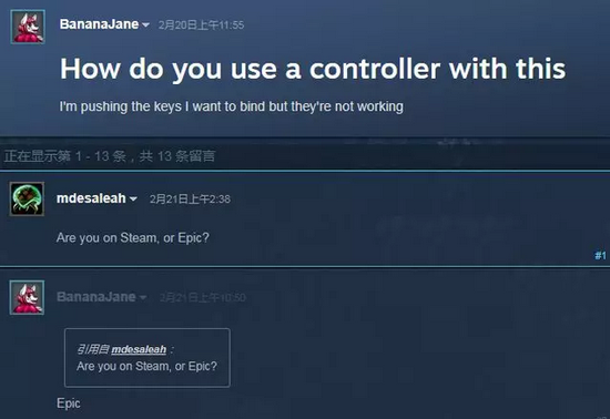 无独有偶,前段时间《公理边缘》成为Epic的赠品游戏,当玩家在游戏中进入第三区域时,游戏便毫无征兆的停止运行,后查实一个名为“Steam.xnb”的音效文件不见了。原因只是因为游戏之前在Steam上发售,开发者Thomas Happ为了“避嫌”,干脆将游戏包中的所有“Steam”的文件删除了……最糟心的是,由于Epic上没有论坛,逼得许多玩家在Epic上遇到游戏问题需要跑到Steam的社区论坛上求助。