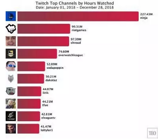 此外Epic旗下《堡垒之夜》在直播领域获得的优势,以《堡垒之夜》主播Ninja为例,在整个2018年Ninja收入将近1000万美元,还获得TGA内容创作奖,登上了《艾伦秀》,并入选ESPN全球百大体育明星。加上Ninja经营的1300万的粉丝体量,为《堡垒之夜》带来了曝光度可谓不可估量。也难怪EA愿意花100万美元让Ninja播一天的《Apex英雄》。