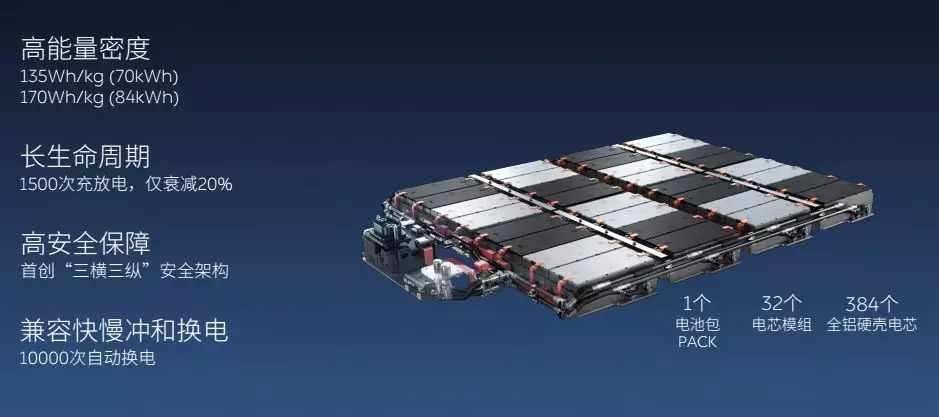 蔚来的ESS储能系统现已有两种版本:一是在蔚来ES8上配备的70kWh(135Wh/kg)版,二是即将在蔚来ES6上配备的84kWh(170Wh/kg)版。目前蔚来方面提供到的信息,仍主要是关于70kWh版本的相关介绍。