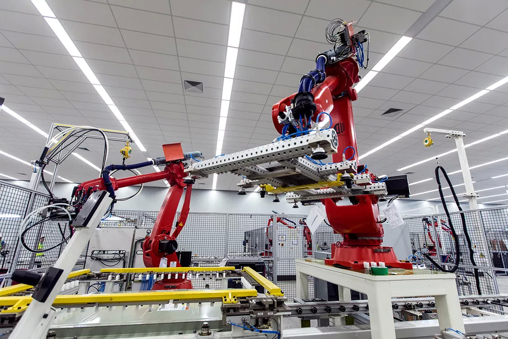 二是全铝整车试制产线。包含车身线、涂装线、总装线三大艺,具备小批量量产和扩展能力。其中,车身试制线集成28台ABB机器人,按照正式线体工艺流程进行规划。蔚来方面表示,“这是国内最先进的全铝试制产线。”