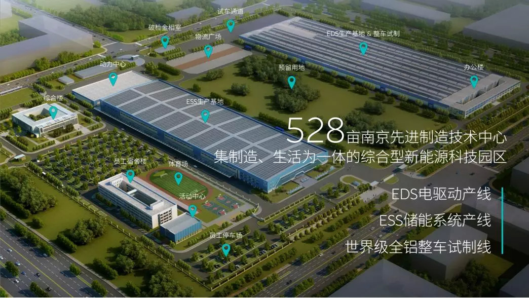 目前建设有240kW电驱动系统生产车间、160kW电驱动系统生产车间、ESS储能工厂、全铝整车试制产线及相关配套设施。