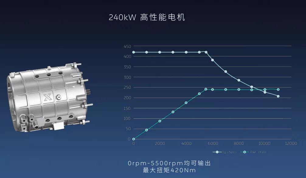 蔚来ES8采用前后双240kW异步感应电机的组合,最大可实现综合功率480kW,综合扭矩840N·m的动力输出,是百公里加速4.4S级的基础保证。