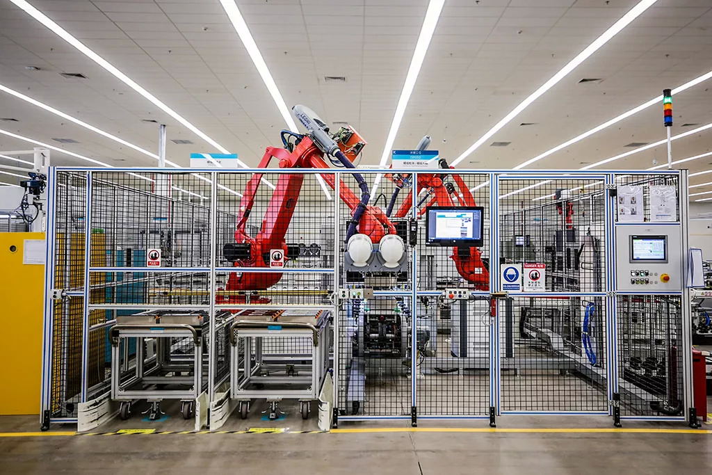 160kW电驱动系统生产车间占地面积25,000平方米,具备电机控制器、电机总成、电驱动总成的生产能力。同样配备MES系统、自动化机器人、自动化IGBT压接生产线,也达到高柔性、高自动化的生产能力。