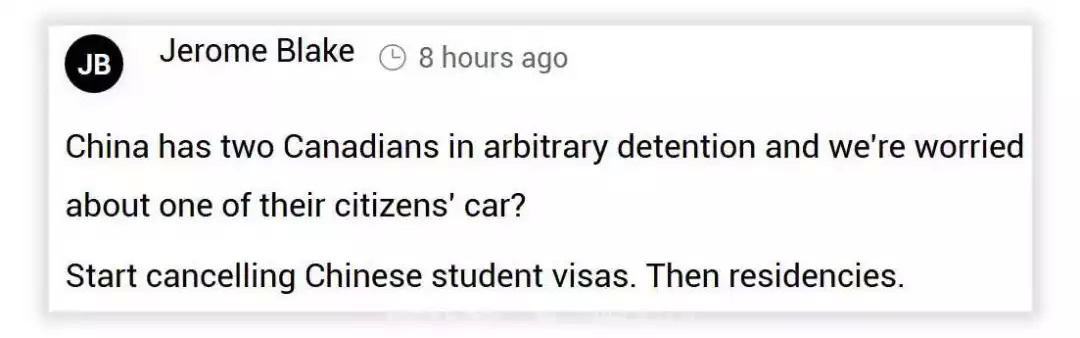 这名叫做Jerome Brake的是所有英文五毛党里最五毛的一个,他认为有两名加拿大人正在中国“受苦”,谴责人们过度关注中国人的车,并要求取消中国留学生的签证和绿卡。重点是,Jerome Brake所指的两个加拿大人是因为贩毒在中国被判刑,而豪车案中的中国留学生是原告,也就是受害人。