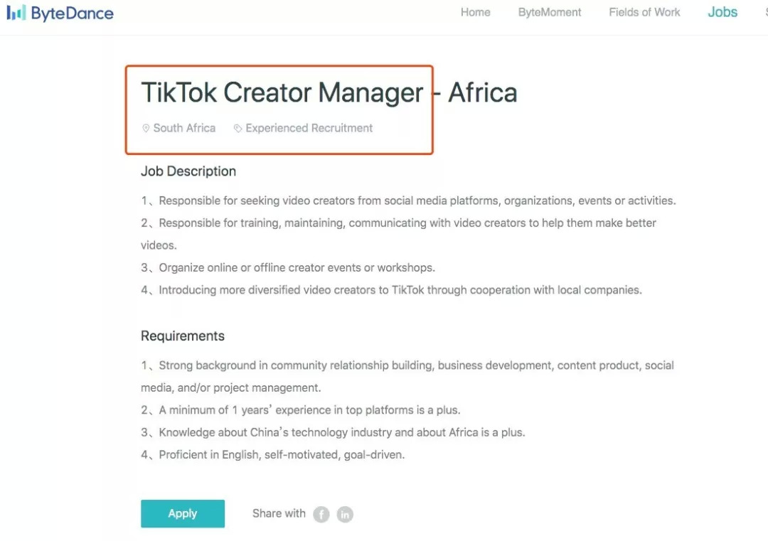 Tiktok还是遵循一贯的打法,同样的产品,运营本地化和内容本地化。正如字节跳动CEO张一鸣说的那样,“(我们的)策略是:全球化产品,本地化内容。”目前抖音是以南非为切入点,同时在尼日尼亚等非洲国家都有本地运营。