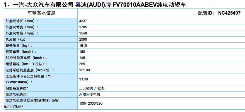 根据公告,奥迪一款纯电动轿车未获得国家补贴,原因是其电池能量密度未达标,纯电动乘用车技术指标要求——纯电动乘用车动力电池系统的质量能量密度不低于125Wh/kg,而该车型为121Wh/kg。