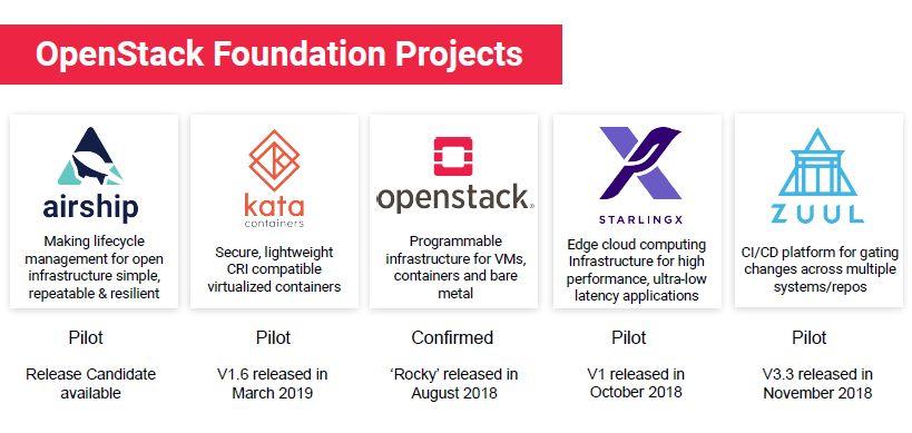 因此,OpenStack基金会从2017年12月开始,推出了4个试点项目——Airship、Zuul、StarlingX、Kata Containers,分别面向新型云开放基础设施、持续集成/部署平台(CI/CD)、边缘云、容器虚拟化等领域,这些是企业打造开放基础设施的重要组成。