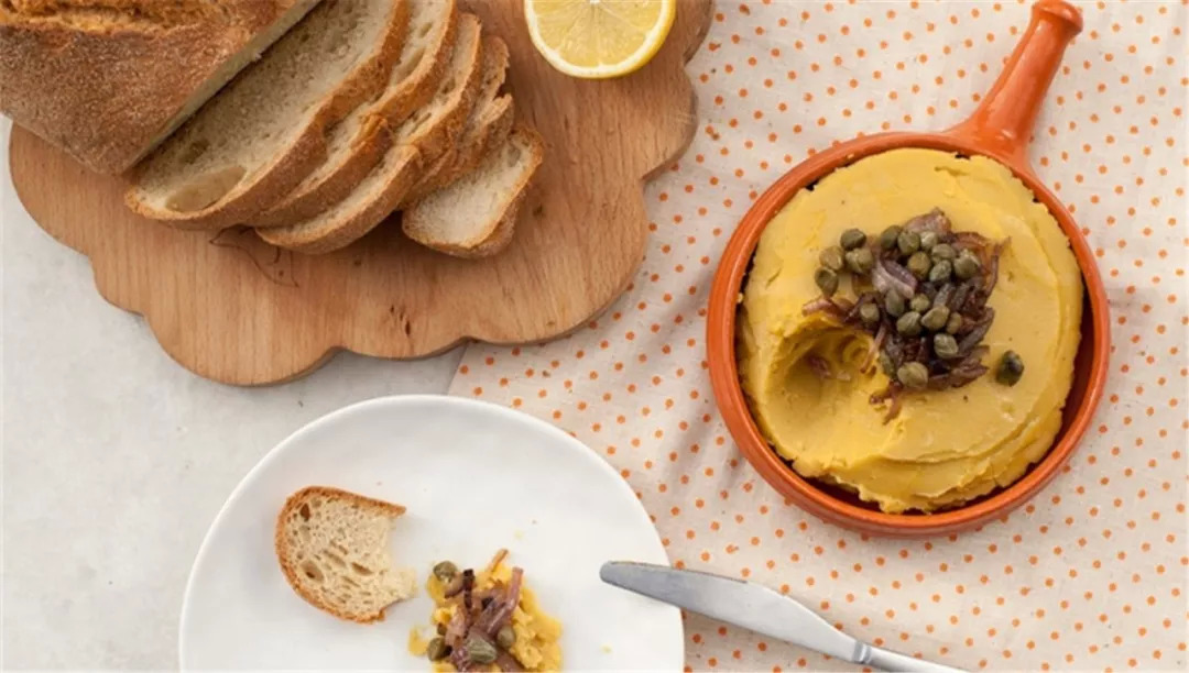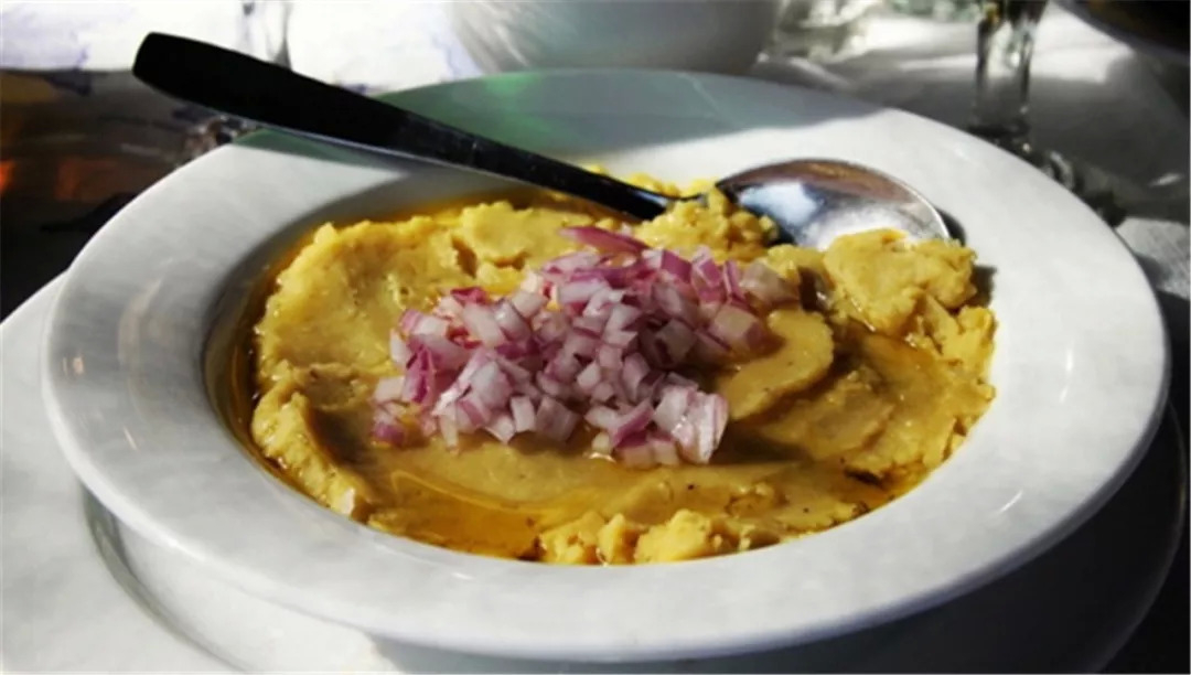 这是一道希腊特色有机食品,用豌豆打成泥,加上橄榄油蒸熟后,撒上洋葱或是鹰嘴豆,即可食用的菜肴。它保留了豌豆原汁原味,虽然很多欧美国家食用土豆泥的方式也是差不多的,但是希腊人独爱豌豆的味道。