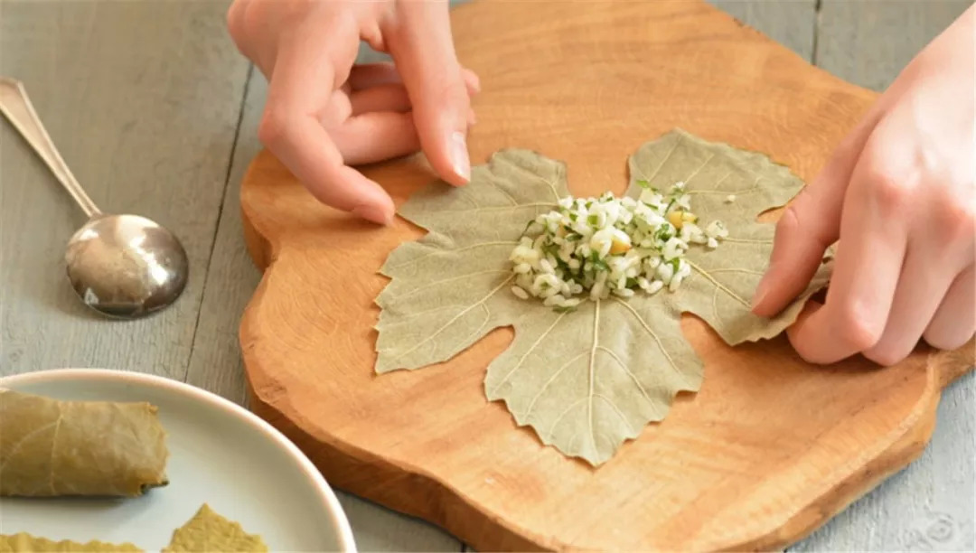 用葡萄叶包裹的碎肉和米饭的食物,也被称为“希腊粽子”。但是和我们的粽子不同,外面包裹的叶子是可以一起食用的。葡萄叶的清香增加了米饭的香味,搭配肉碎的咸鲜,味道上层次很丰富。