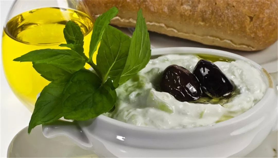 这是是一种源于奥斯曼帝国的蘸酱,利用了小黄瓜及以羊奶制成的酸乳酪(脱乳清酸奶)来做。这款食物在希腊菜和土耳其菜都能看到,希腊式的酱汁比较稠,可直接当作前菜。土耳其式的酱汁比较稀,而且有时还加入了辣椒粉。作为酱汁时,被认为是一种可替代蛋黄酱的健康选择,可以用来涂面包。酸奶的醇厚加上黄瓜的清爽,配上橄榄油的调和,看上去会有点腻的酱汁,其实尝起来一点也不会。