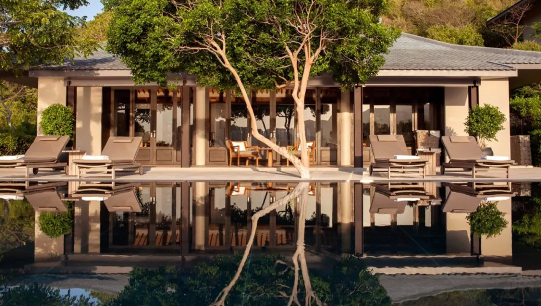 酒店占地共计25亩,由80栋沿山坡蜿蜒分布的别墅组成,每一栋别墅都有专属的10米游泳池,俯瞰洁白的Aow Thai沙滩。