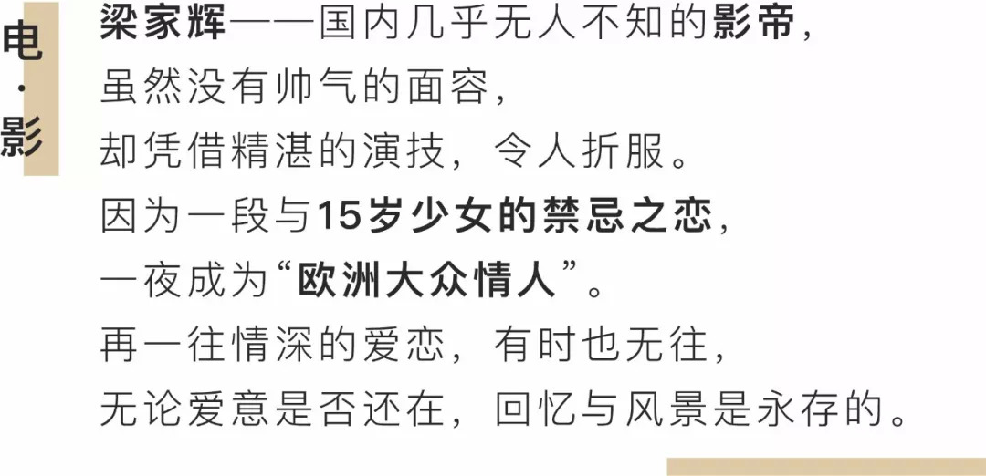 她的自传式电影《情人》上映后,梁家辉凭借精湛的演技,和大胆的全裸出演、激情戏份轰动了欧洲,被誉为“欧洲大众情人”,也丰盛了光影世界。