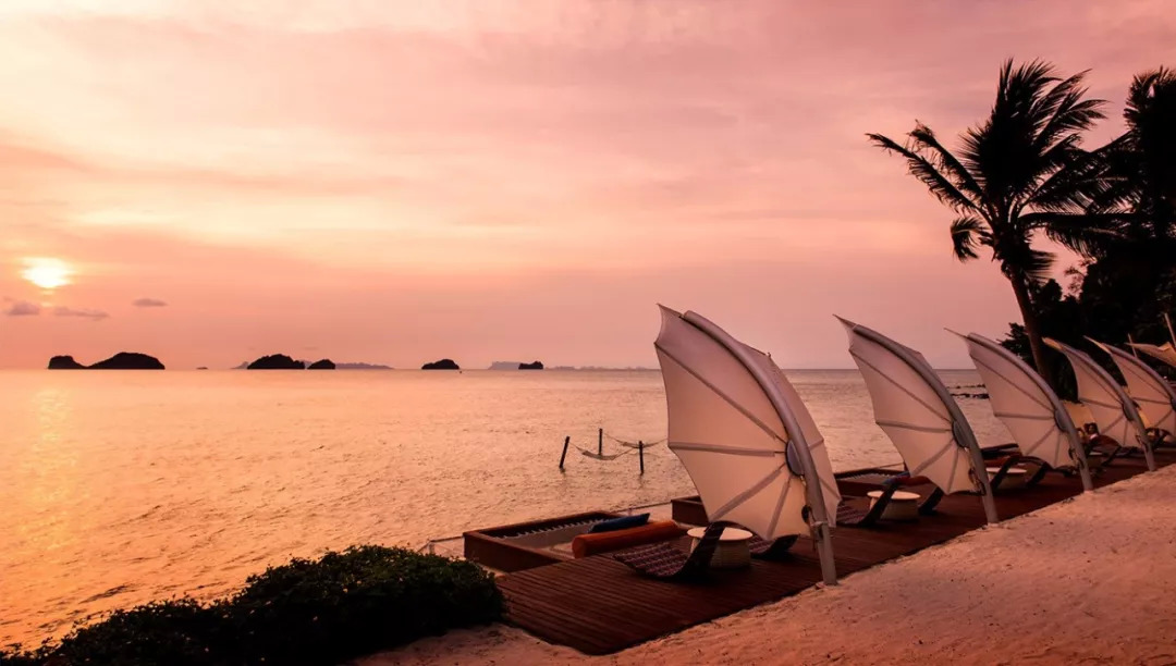 苏梅岛康莱德酒店位于风景秀丽的Phang Ka半岛,距离浪漫的白色沙滩和蔚蓝的泰国湾仅几步之遥,因而这里绚烂的夕阳景致极美。