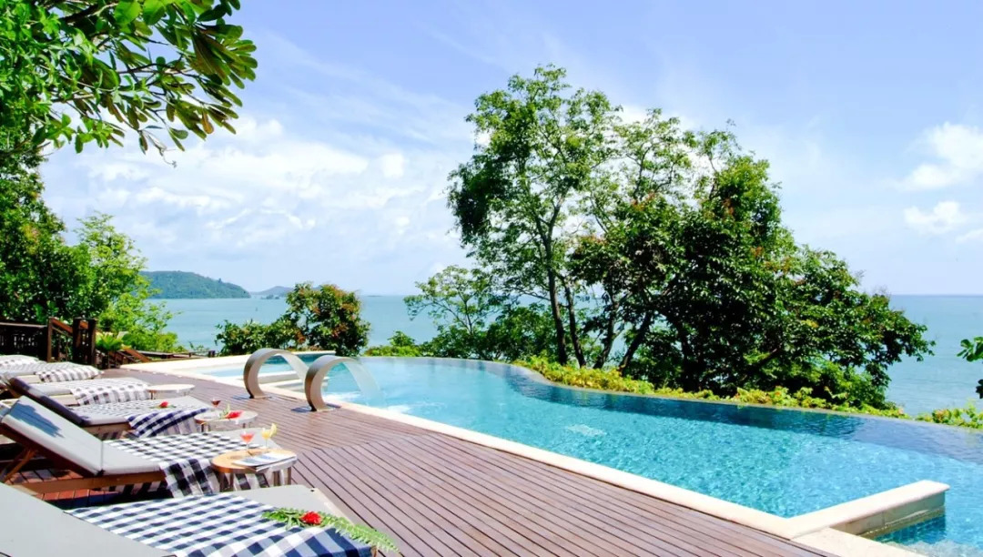 度假村地处海拔40-60米处,被40亩葱郁热带丛林环抱,由此可俯瞰普吉岛东南端的壮丽美景。