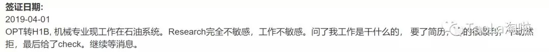 近期H类签证被Check案例