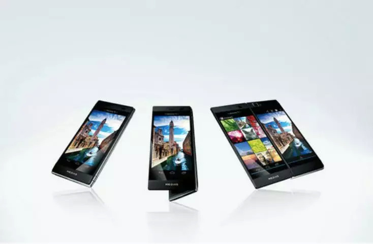 2013年日本通信运营商NTTDoCoMo就在其春季发布会上,公布了一款由NEC制造的双屏智能手机MediasW,该款手机采用折叠式屏幕,可像书本一样摊开,左右各是一块4.3英寸540×960像素分辨率的屏幕。利用中间的轴承让它能逆向折叠,然后从两块4.3英寸显示屏,合并成5.6英寸大显示屏幕,可惜的是这款具有超前设计理念的产品,却因为各种硬件或者软件上的不足,造成销量不佳,最终的结局只是在市场上昙花一现。