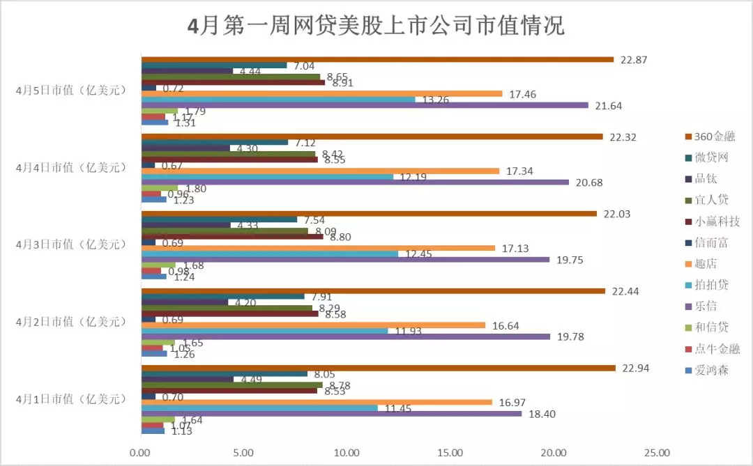 4月第一周,在美股不断增值的情况下,多家美股网贷上市公司股价和市值实现双增长。在多家投资机构的重点推荐下,乐信股价快速上涨并创出新高。品钛股价在创出新高后有所回落,但其已经与3家银行达成业务合作,收购了一家金融科技公司并取得新加坡资管服务牌照。