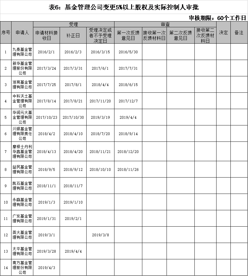 值得注意的是,该表显示,摩根士丹利华鑫基金的申请材料受理日为2018年4月 。