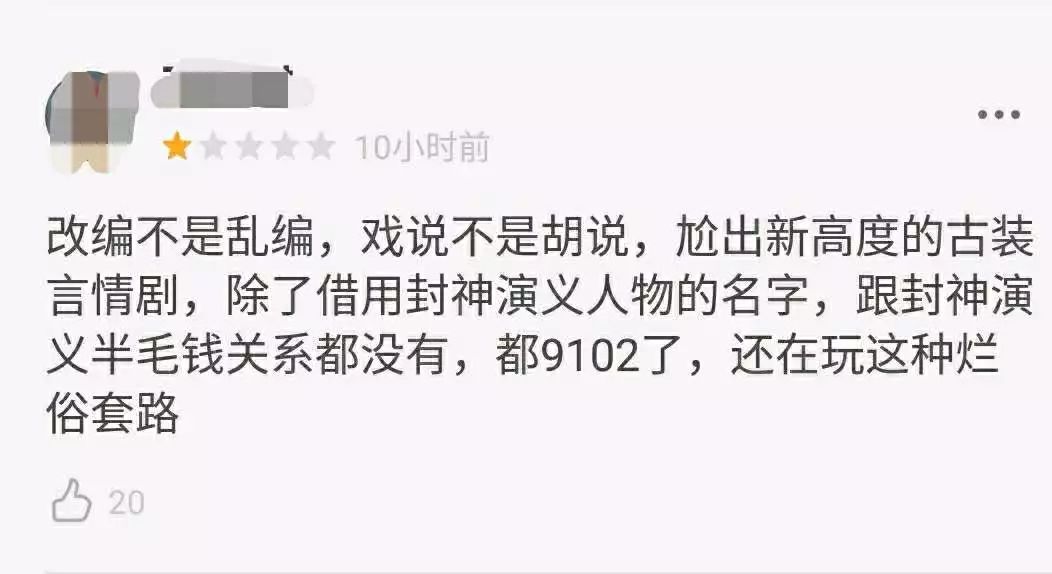 某豆瓣网友一针见血地指出,“除了借用封神演义人物的名字,跟封神演义半毛钱关系都没有”。