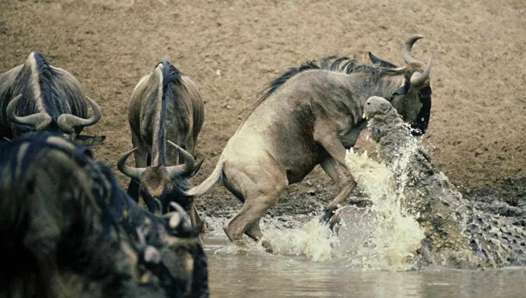 仅仅是这一条河,就能吞噬上百条生命,准备渡河的动物们会因为湍急的河流而被淹死,会因为打搅了河马的休息而被咬死,会被潜藏在河里的鳄鱼当作美餐。当这一切都平安度过时,精疲力竭的动物们还需要面对河对岸正虎视眈眈的狮子、猎豹、花豹等这些大型食肉动物。这是一个神的舞台,一双上帝之手导演着这片草原上这一出出年度大戏。