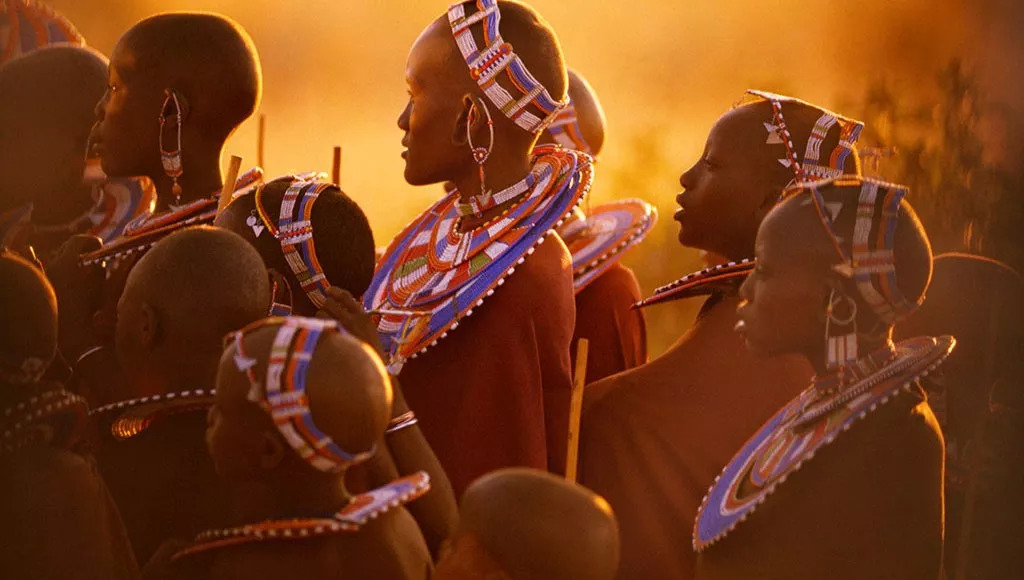 马赛族人四处迁移,赶着牛群寻找水和食物。他们以牛来衡量财富,很少猎食野生动物或捕杀取皮。马赛族人高尚而优雅,他们将头发染红,身穿着有肩饰的赭色长袍。和这片土地上的动物们和谐地生活在一起。