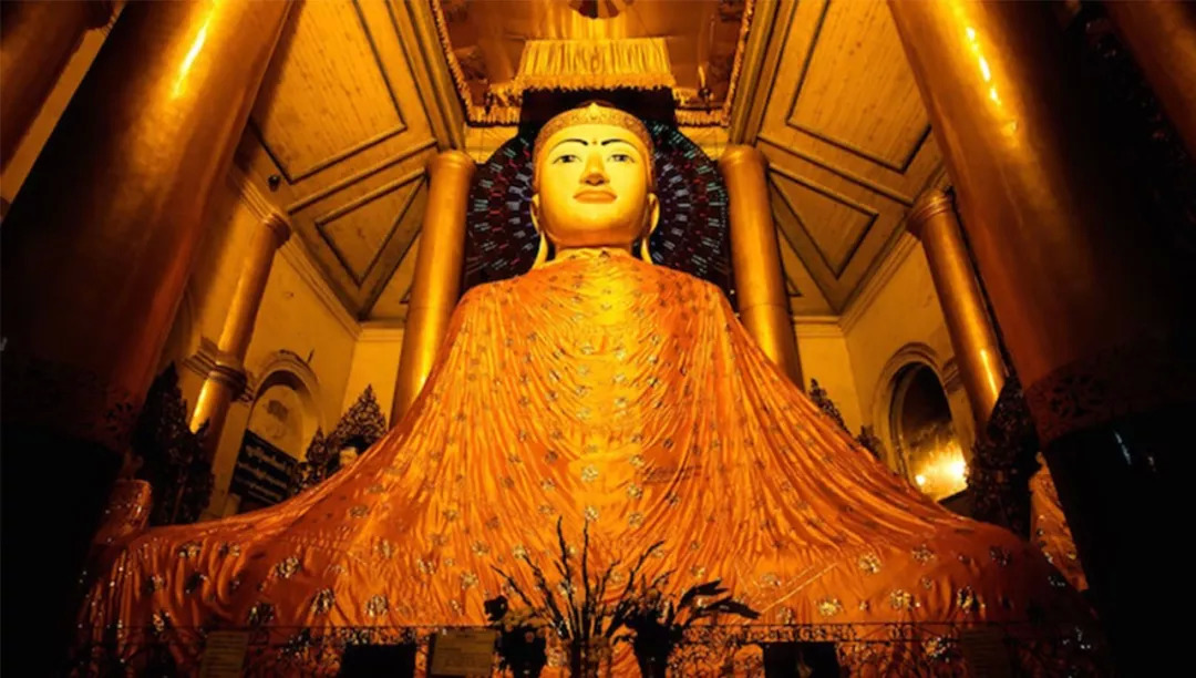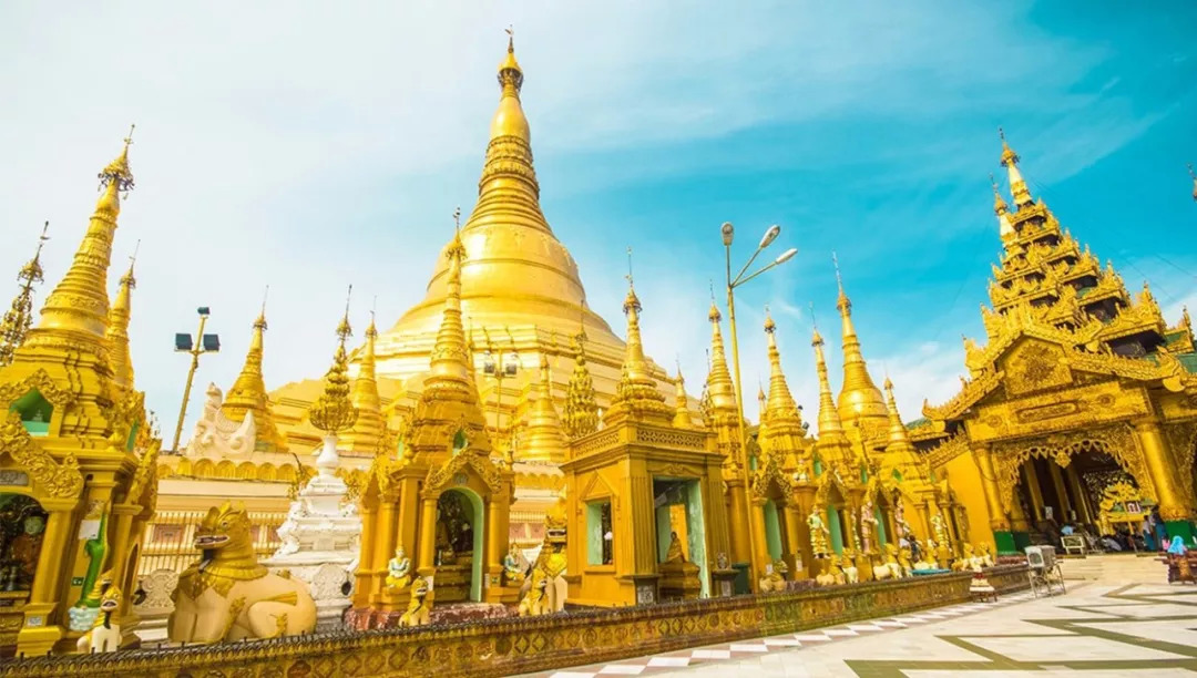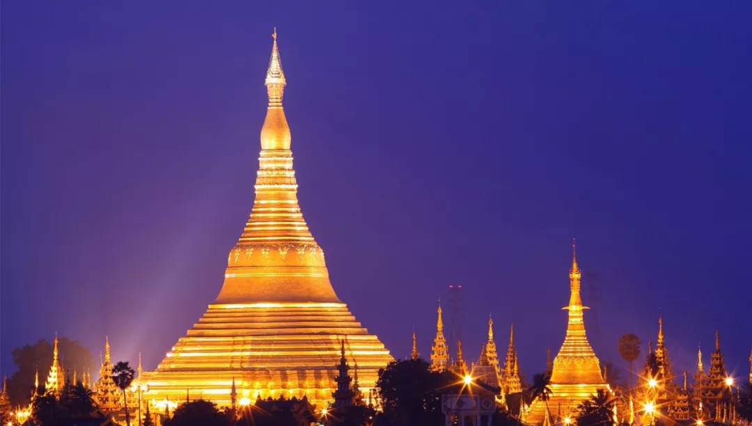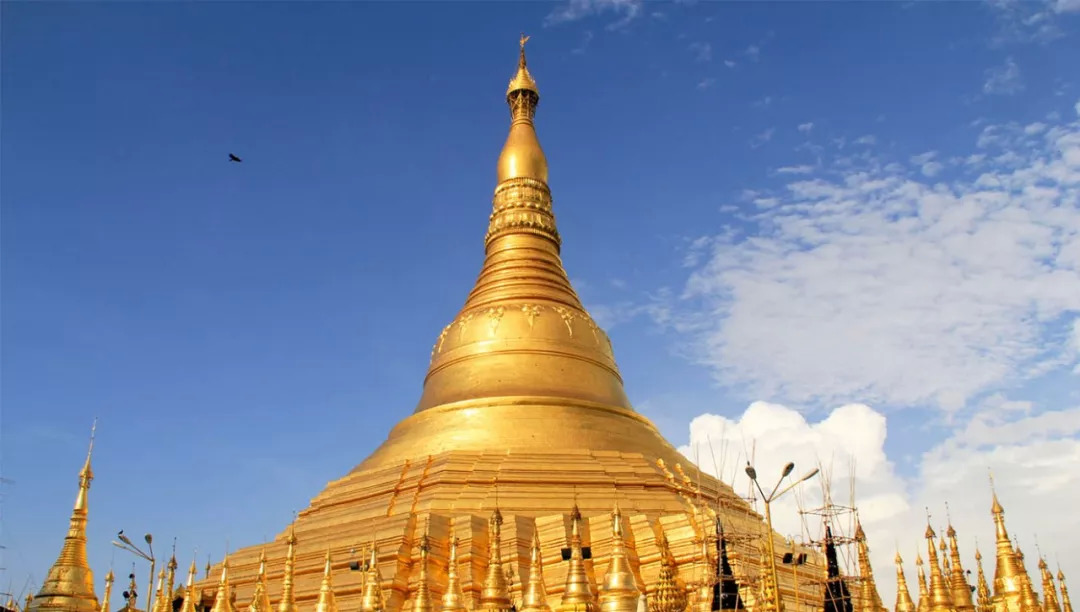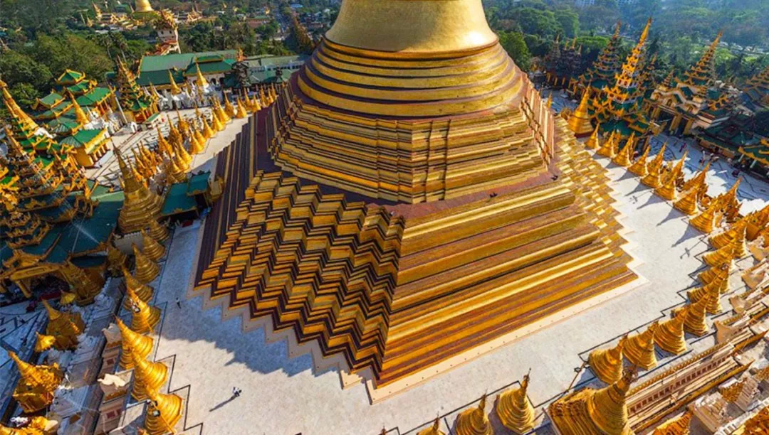 仰光的大金塔是缅甸最大的佛教圣地,也是世界著名佛塔之一。这个大金塔高98米,由70吨黄金铸成,整个高塔用20516张金片贴住,塔顶镶嵌着4300多颗宝石。