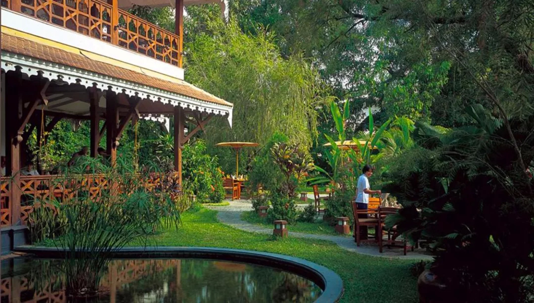 酒店被莲花池塘点缀的繁茂大花园所包围,环境宁谧清幽,带着禅意般的神秘色彩。
