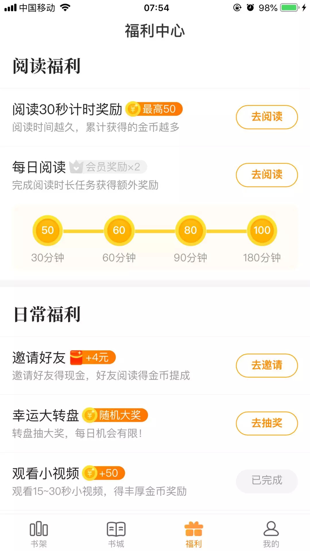 七猫小说则设计了更丰富的任务体系,多种途径赚取金币用来提现,也可以看视频广告免页面广告,也引入了会员免广告的机制。