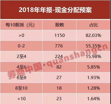 二者合计,分配力度在0至4元的公司共有1000家,占比达到71.33%,是目前年报分配预案的主流配置。