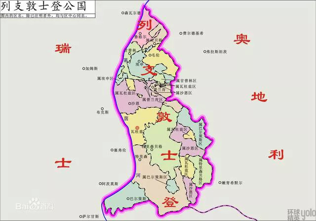 列支敦士登公国是欧洲中部的内陆袖珍国家,位于莱茵河上游东岸,处于瑞士与奥地利两国之间,国土总面积160.5平方公里,全国总人口不足4万(2017年)。由于列支敦士登地狭人少,不设常备国防军,海关也由瑞士掌管,所以连货币也不发行,国内流通货币主要是瑞士法郎与欧元。
