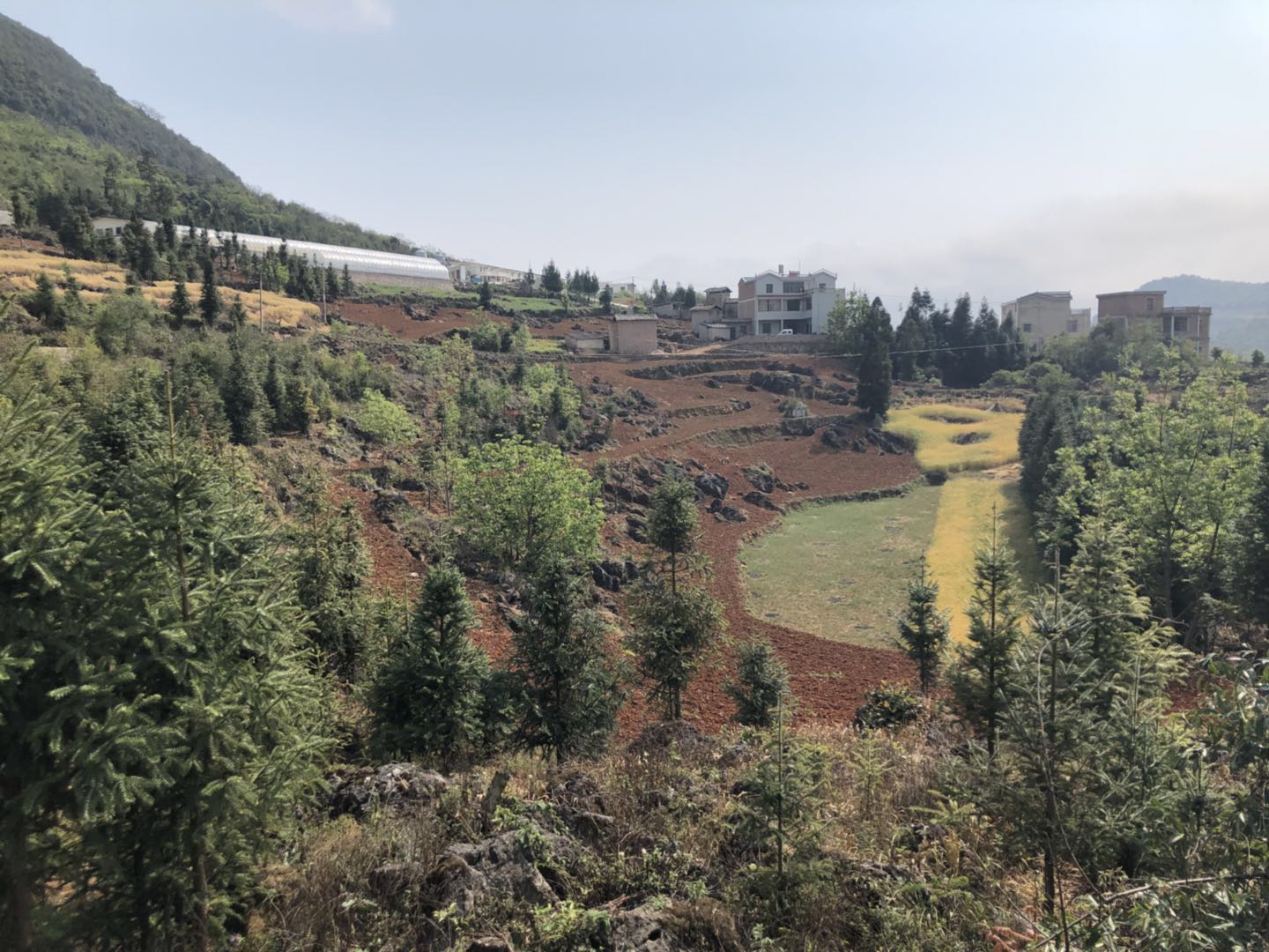 曲靖市通往炎方乡的路上随处可见大片的银杏苗。当界面新闻记者到达康恩贝孙公司希美康所在地炎方乡红土沟时,眼前所见也仅有低矮的银杏树苗。