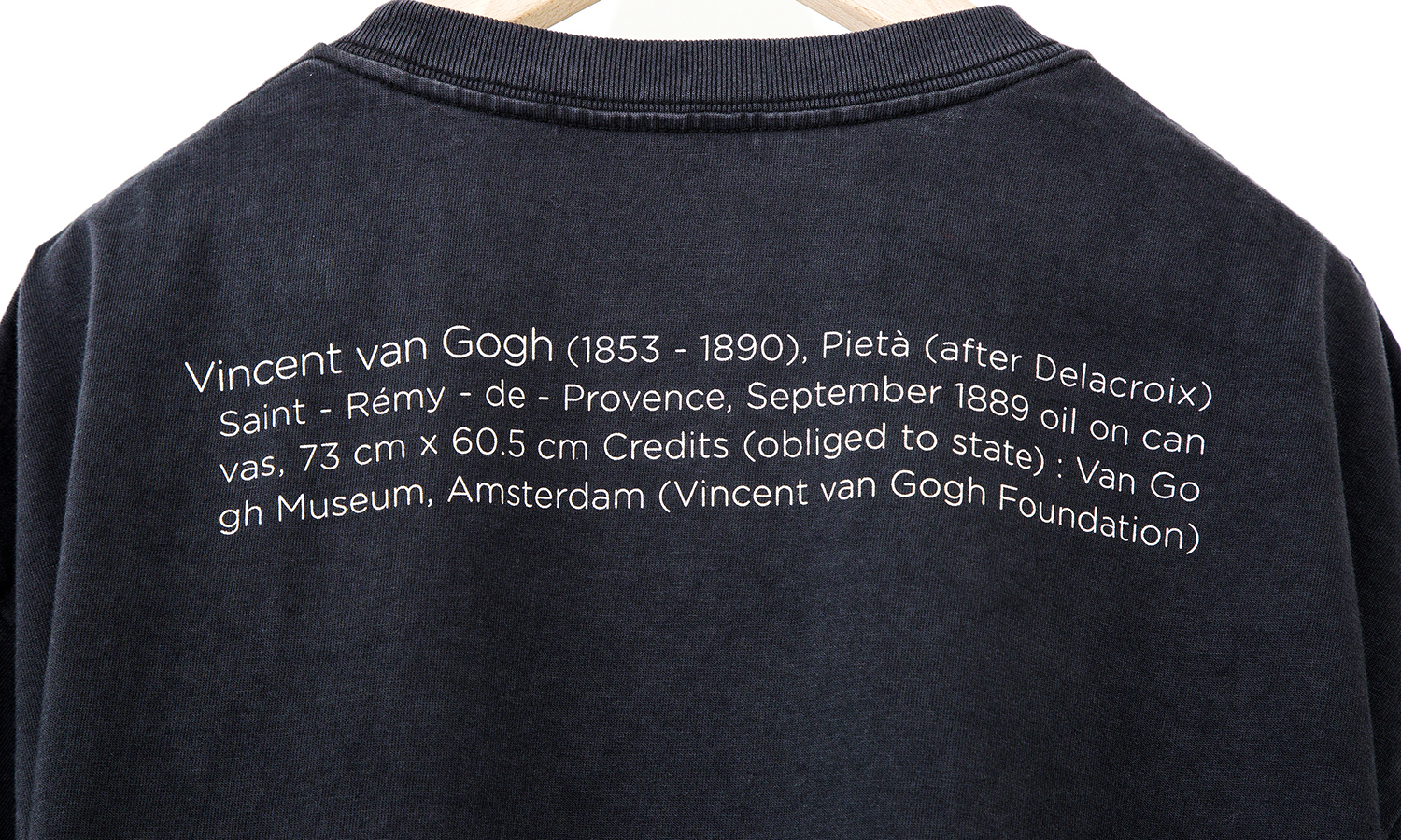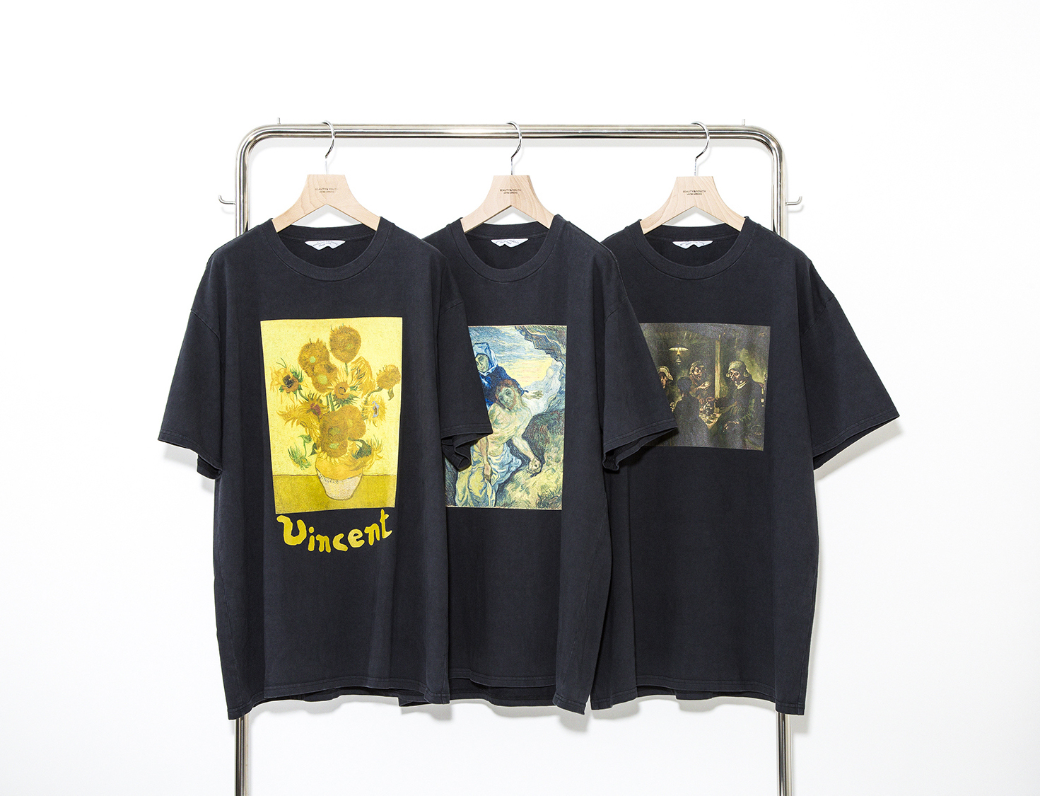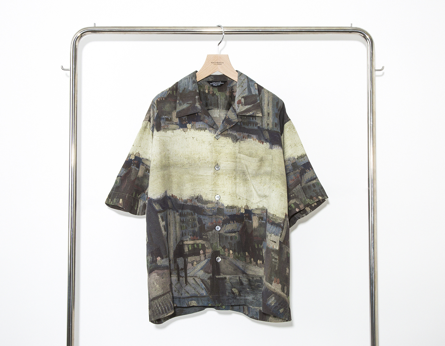 最近将梵高的作品运用到设计中的则是日本街头潮流品牌UNUSED。,设计师德重川元此番特地与荷兰阿姆斯特丹梵高美术馆合作。从布满抽象笔触的夏威夷衬衫,到将涂鸦字体与画作融合呈现的T恤,设计师都将画家200多幅珍贵画作以独特的形式重新演绎到服饰之中。