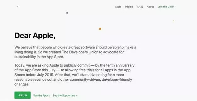 坦白说,这也是一个不想再被苹果“压榨”的媒体了。有可能会有人认为这都是在2019年才出现的苗头,并算不上什么,其实在2018年的5月份,一个名为『开发者联盟』的团体要求苹果公司增加App Store的开发者分成比例,并向用户提供收费APP的免费试用时限。