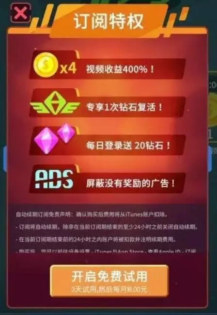 至于为什么苹果会叫停当时的付费订阅,至今也是没有一个具体的说明。不过在近期不少的休闲游戏中,游戏中的订阅模式已然成为了一种主流。
