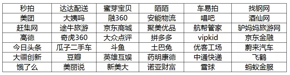 阿里、新浪、京东、高德、