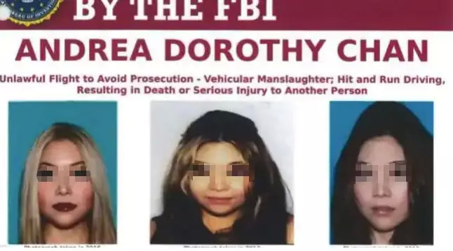 33岁的美籍华人陈玉清(Andrea Dorothy Chan Reyes)在被FBI全球通缉一年后于澳大利亚被逮捕,她曾于2017年在车祸现场肇事逃逸并导致受害者死亡。
