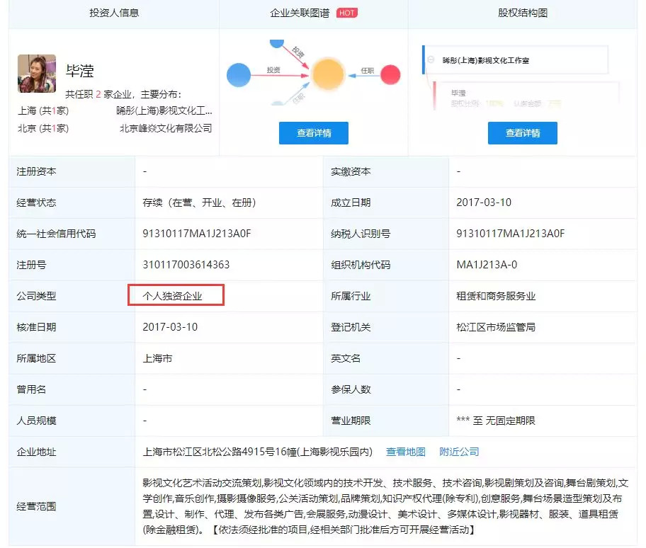 随意查询一下“上海影视文化工作室”的关键词,跳出来五千多家公司,其中公司法人几乎都是明星本人,连去年被爆出“偷税漏税”的范冰冰工作室“爱美神”法人也是范冰冰本人。