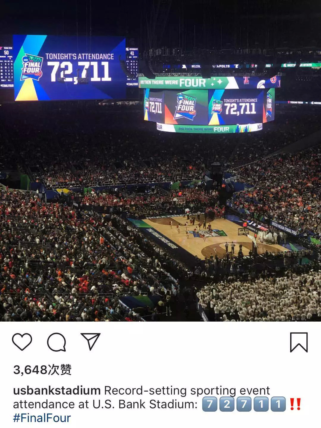 72711人——今年NCAA决赛的恐怖上座率