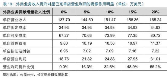 我们换个例子,来看看星巴克的外卖数据。下表是长江证券研究所的研究成果。