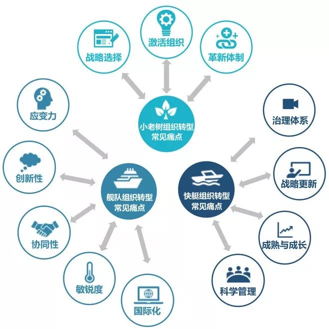 多元发展、体量较大的“舰队”组织由于自身规模大、管理体系复杂,往往面临提高应变力、创新力、敏锐度、国际化水平以及保障新旧业务协同等方面的压力。