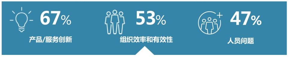怡安2018年最佳雇主调研结果显示,最佳雇主的CEO认为影响组织成功的关键业务挑战为:产品/服务创新、组织效率和有效性以及人员问题。其中,产品/服务创新从2017年的第三位提升至第一位,在面临转型时,企业愈发重视创新能力,同时,也需要通过组织能力提升和人员管理优化来应对挑战。