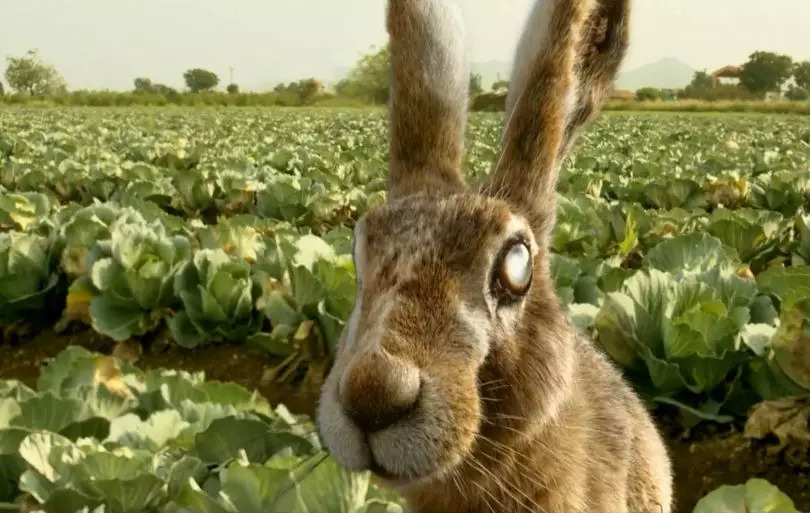 一位农夫准备猎杀一只偷菜的兔子,而这只兔子的眼睛是瞎的。